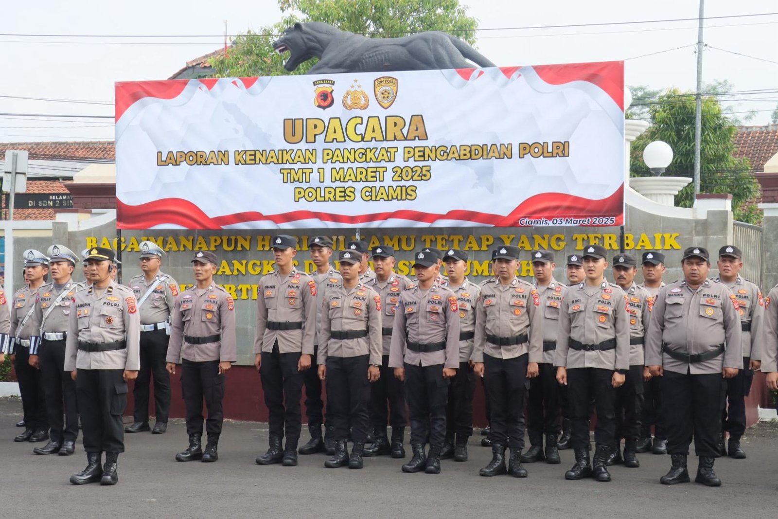 Upacara berlangsung dengan khidmat dan menjadi momen apresiasi bagi personel Polres Ciamis yang telah mengabdikan diri dengan baik kepada institusi dan masyarakat.