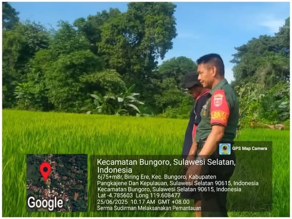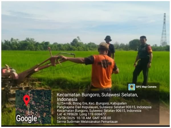 Pangkep, Sulawesi Selatan, Lintasnusa.com — Serma Sudirman, Babinsa Desa Biringere dari Koramil 1421-02/Minasa Tene, Kodim 1421/Pangkep, aktif melakukan pemantauan dan pendampingan terhadap kegiatan pemeliharaan lahan sawah program Luas Tambah Tanam (LTT) di Kampung Biringere, Kecamatan Bungoro, Kabupaten Pangkep.
