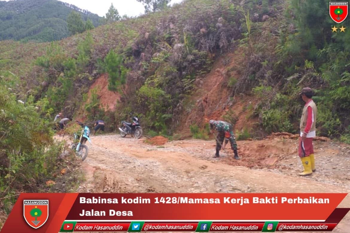 Mamasa – Babinsa Koramil 1428-04/Pana melaksanakan kerja bakti bersama dengan masyarakat di Desa Batu Papan Dengan sasaran menimbun jalan yg berluba di Desa Baru Papan kecamatan Nosu Kabupaten Mamasa, Kamis (12/12/2024)