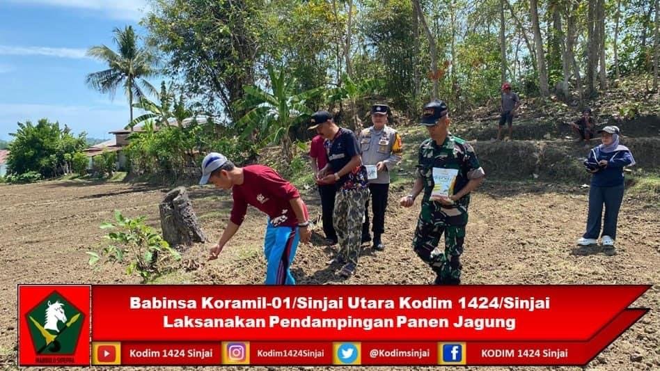 Babinsa Koramil-01/Sinjai Utara Kodim 1424/Sinjai Laksanakan Pendampingan Panen Jagung
