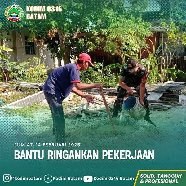 lintasnusa.com–Babinsa Koramil Belakang Padang Membantu Meringankan Pekerjaan Warga di Kelurahan Pemping Kecamatan Belakang Padang. Jum’at(14/02/2025).