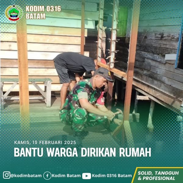 Padang – lintasnusa.com – Babinsa Koramil Belakang Padang Membantu Warga Mendirikan Rumah di Kelurahan Pecong Kecamatan Belakang Padang. Kamis(13/02/2025).