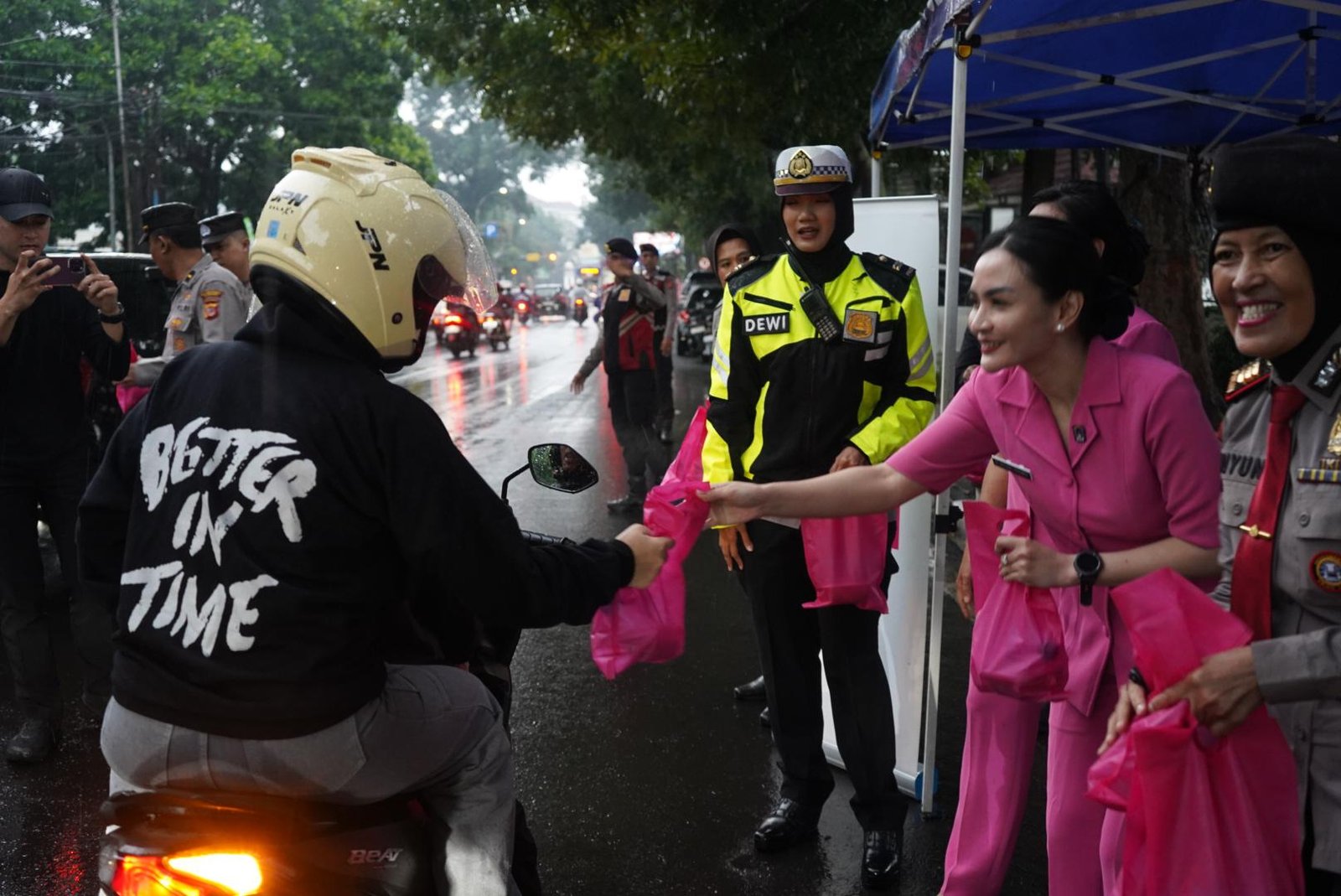 Bersama Bhayangkari Polrestabes Bandung Berbagi Takjil kepada Pengendara dan Pejalan Kaki