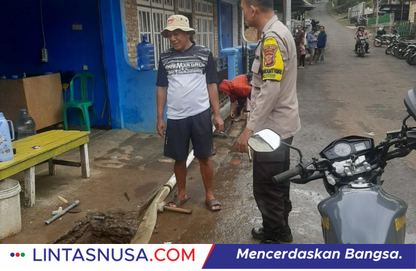 Bhabinkamtibmas Desa Margaharja Sambangi Warga Saat Gotong Royong, Wujudkan Kamtibmas yang Humanis dan Bersinergi