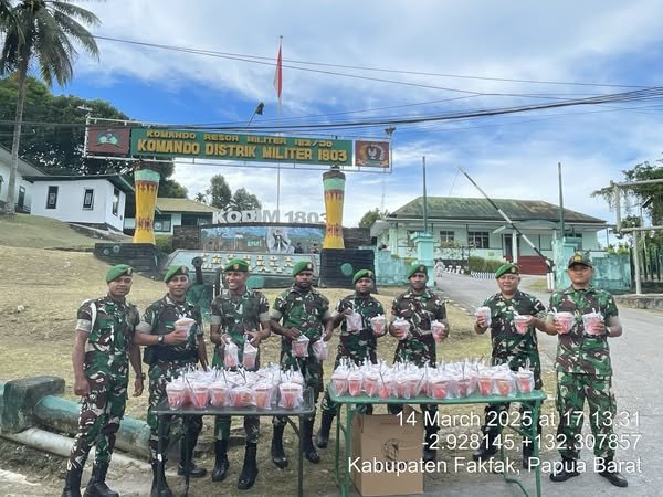 Di hari ke 14 puasa , jajaran Kodim 1803/Fakfak berbagi takjil gratis kepada para pengendara dan masyarakat yang melintas di depan Makodim, Fakfak. Kegiatan ini menjadi bagian dari tradisi tahunan yang secara konsisten dilakukan untuk mempererat hubungan antara TNI dan warga.