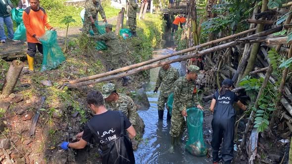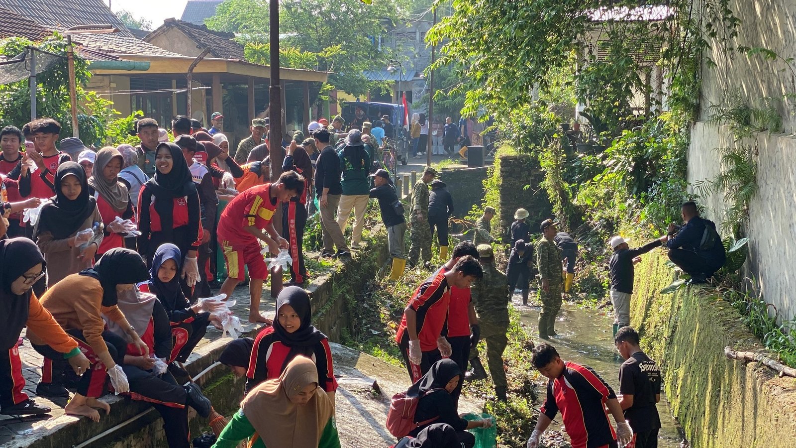 Ratusan orang turun langsung ke sungai, mengangkat sampah, dan membersihkan aliran air.