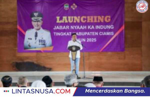 Ciamis–ASOSIASI WARTAWAN DEMOKRASI INDONESIA— Suasana haru dan penuh semangat memenuhi Gedung Islamic Center Kecamatan Cipaku, Jumat (11/4/2025), saat Bupati Ciamis, Herdiat Sunarya, secara resmi melaunching program sosial Gerakan Ciamis Nyaah Ka Indung.
