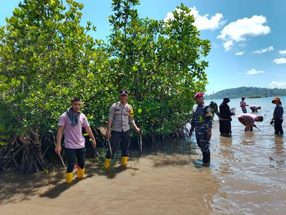 Sumatra Utara – TNI AL, Dispen Kormar, Pasmar 1. Dalam rangka mencegah terjadinya abrasi di pesisir pantai, prajurit Batalyon Marinir Pertahanan Pangkalan (Yonmarhanlan) II Padang yang bertugas di wilayah kerja Lantamal II Pos Angkatan Laut (Posal) Sikakap melaksanakan bakti sosial penanaman pohon mangrove yang bertempat di Dusun HVA, Desa Sikakap, Kep. Mentawai, Provinsi Sumatera Barat, Rabu (30/10/20240).