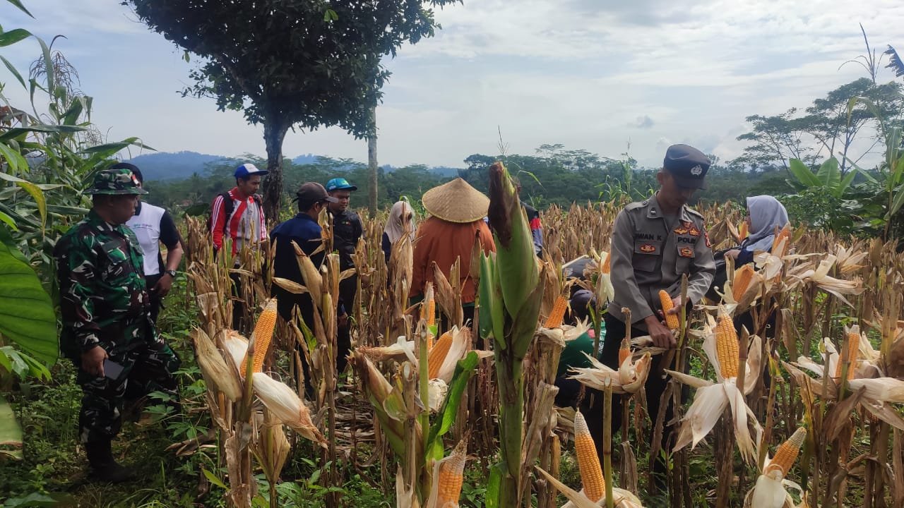 Ciamis – lintasnusa.com-Personel Polsek Rajadesa Polres Ciamis Polda Jabar mendatangi masyarakat Desa Tanjungjaya yang sedang beraktifitas panen jagung dilahan Gapoktan. Lahan pertanian Gapoktan Wibawa Mukti itu berada di Tanah Pengangonan Desa Tanjungjaya, Kecamatan Rajadesa, Kabupaten Ciamis, Jawa Barat, Sabtu (22/2/2025).
