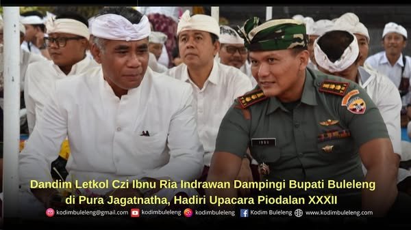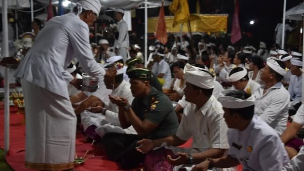 Buleleng, Bali, Lintasnusa.com – Dandim 1609/Buleleng, Letkol Czi Ibnu Ria Indrawan, SH., M.Han., bersama Bupati Buleleng, dr. I Nyoman Sutjidra, Sp.OG., menghadiri Persembahyangan Puncak Piodalan ke-32 di Pura Agung Jagatnatha Buleleng, Kamis malam (10/7). Suasana yang sakral dan penuh khidmat menyelimuti jalannya upacara, yang dimulai pukul 18.00 WITA dan berakhir pada pukul 20.00 WITA. Prosesi pujawali ini dipuput oleh Jro Mangku Gede Suyasa dan diikuti oleh sekitar 100 umat Hindu yang datang dengan penuh rasa bhakti.