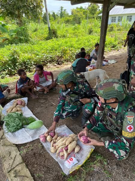 Dalam kegiatan tersebut, personel Satgas membeli berbagai hasil pertanian seperti ubi, pisang dan sayur-mayur yang merupakan sumber utama penghidupan warga setempat. Dengan adanya transaksi langsung ini, diharapkan dapat memberikan manfaat ekonomi bagi masyarakat serta mendorong mereka untuk terus mengembangkan sektor pertanian dan perkebunan.