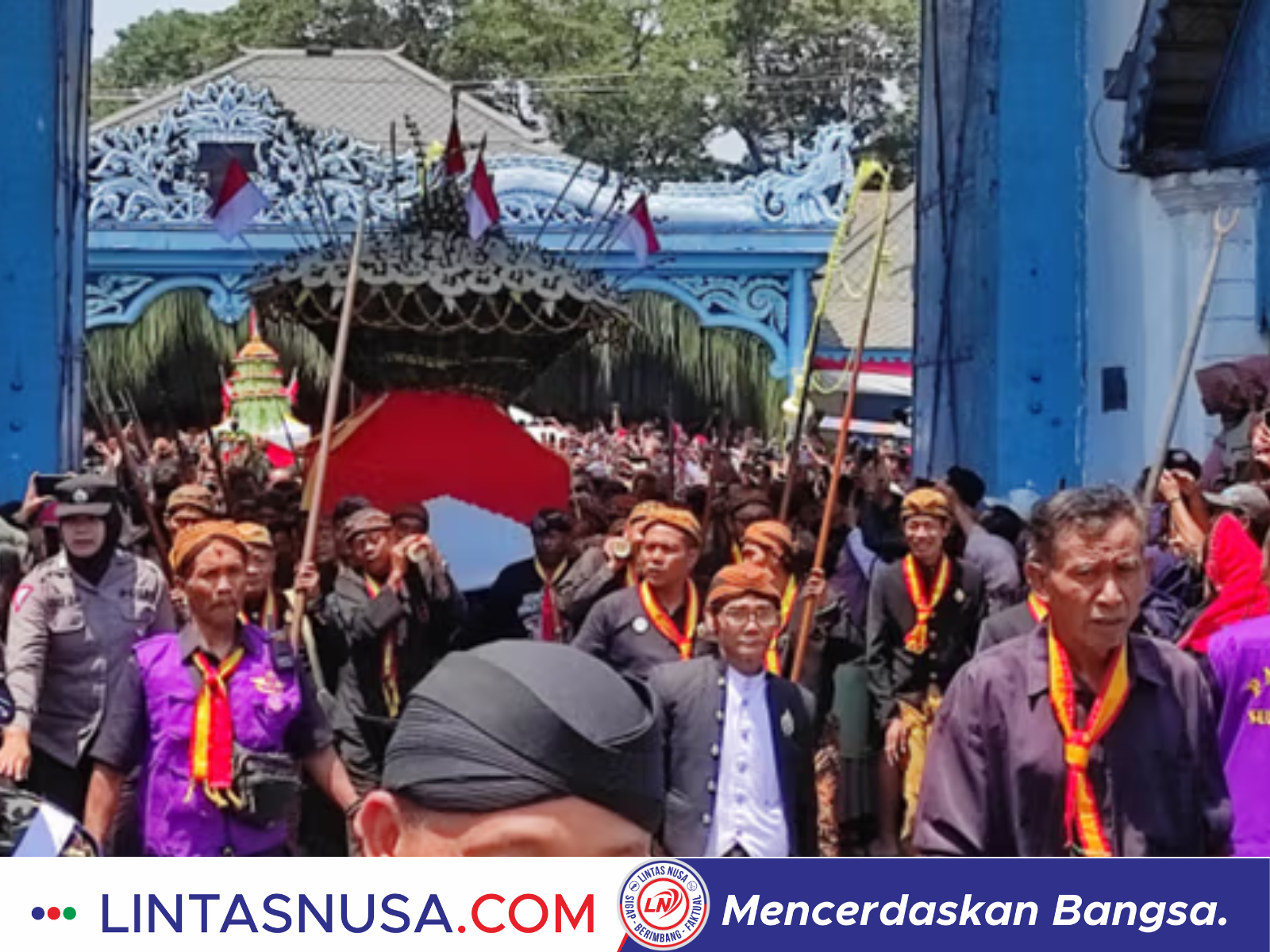 Surakarta, Lintasnusa.com– Ratusan warga dan wisatawan tumpah ruah di halaman Masjid Agung Surakarta, Sabtu pagi (7/6/2025), dalam puncak tradisi Grebeg Besar yang digelar oleh Keraton Kasunanan Surakarta Hadiningrat untuk memperingati Hari Raya Idul Adha 1446 Hijriah. Dalam prosesi sakral dan meriah itu, dua gunungan yang sarat dengan hasil bumi serta makanan tradisional menjadi rebutan masyarakat sebagai simbol berkah dan kemakmuran.