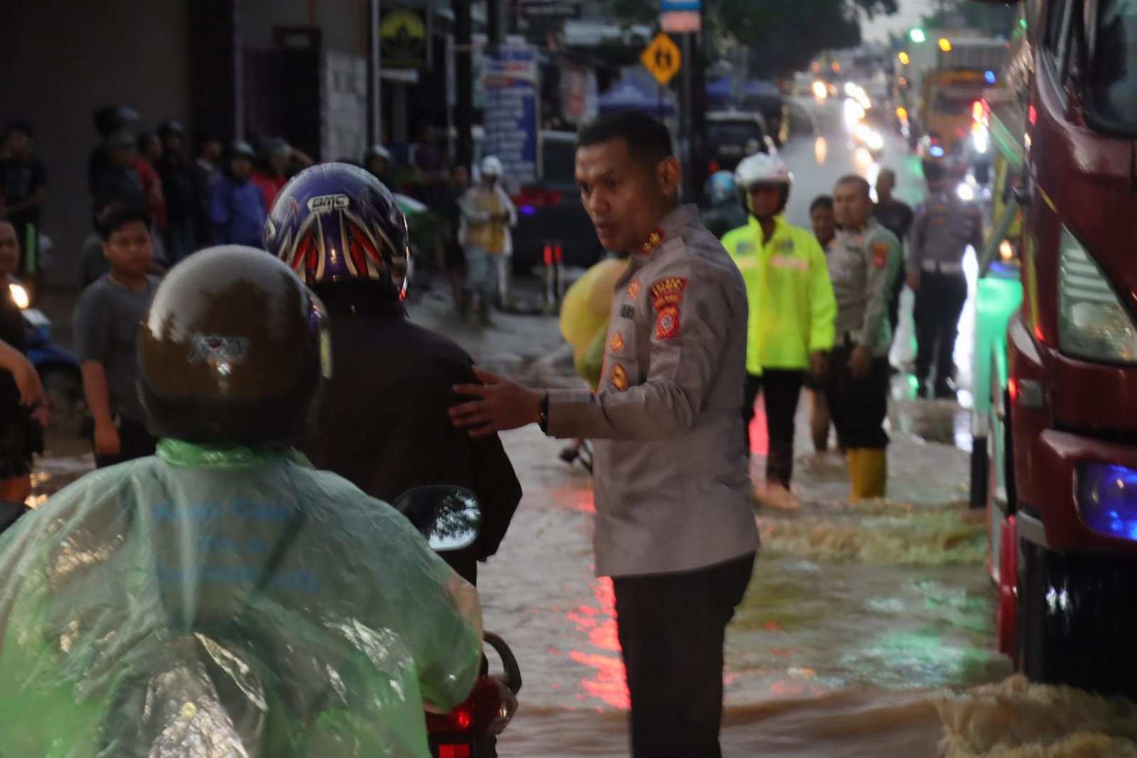 “Kami hadir langsung di lokasi untuk memastikan lalu lintas tetap lancar dan mengurangi potensi kecelakaan akibat genangan air. Keselamatan pengguna jalan adalah prioritas kami, dan kami mengimbau masyarakat untuk tetap berhati-hati saat melintas di jalan yang tergenang,” ujar AKBP Akmal di sela-sela kegiatan.