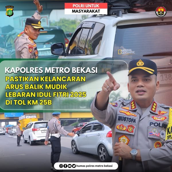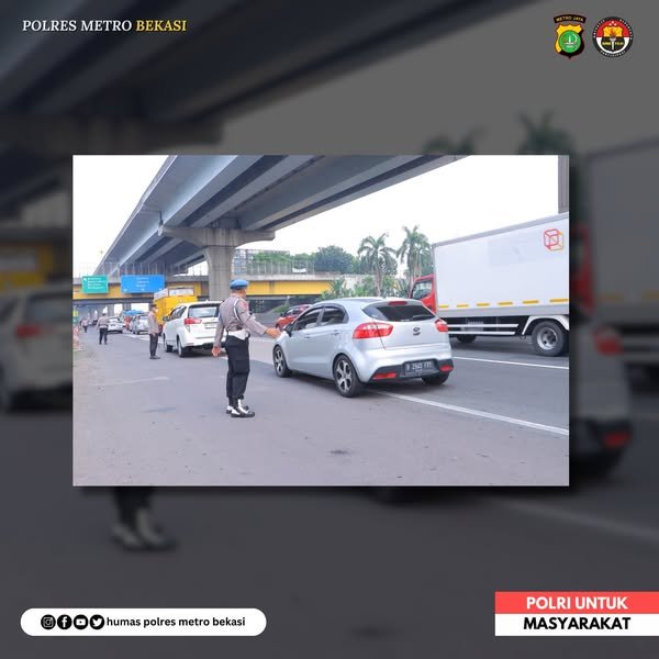 Kegiatan tersebut merupakan bagian dari Operasi Ketupat Jaya 2025, di mana Polres Metro Bekasi secara aktif memantau dan mengamankan jalur vital arus balik yang menjadi titik konsentrasi kendaraan dari arah timur menuju Jakarta dan sekitarnya.