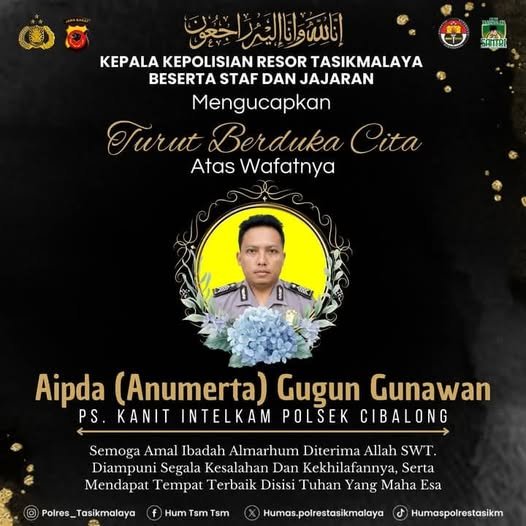 “Kami segenap keluarga besar Polres Tasikmalaya turut berduka cita yang sedalam-dalamnya atas berpulangnya rekan kami, Aipda (Anumerta) Gugun Gunawan. Semoga almarhum mendapatkan tempat terbaik di sisi-Nya, serta keluarga yang ditinggalkan diberikan ketabahan dan kekuatan,” ujar Kapolres Tasikmalaya.
