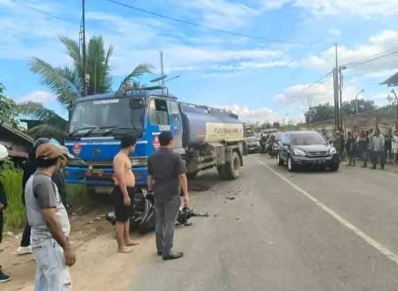 > “Truk tangki diduga hendak menyeberang untuk berhenti makan. Saat itu, motor Vario melintas dengan kecepatan tinggi dan langsung menabrak bagian samping truk,” jelasnya.
