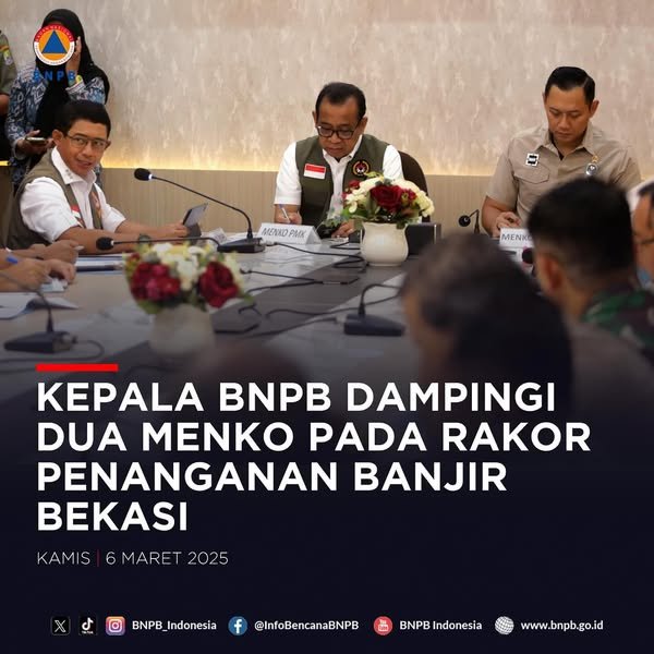KEPALA BNPB DAMPINGI DUA MENKO PADA RAKOR PENANGANAN BANJIR BEKASI