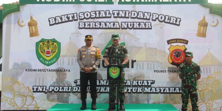 Tasikmalaya – lintasnusa.com– [24/3/2025] – Dalam upaya mempererat sinergi dan kepedulian terhadap masyarakat, Kodim 0612/Tasikmalaya bersama Polres Tasikmalaya Kota dan PT. Nukar menggelar kegiatan Bakti Sosial bertajuk “Bersama Kita Kuat: TNI-POLRI dan NUKAR Untuk Masyarakat”. Acara ini dilaksanakan di Markas Kodim 0612/Tasikmalaya, Jalan Otista No. 11, Kelurahan Empang Sari, Kecamatan Tawang, Kota Tasikmalaya.