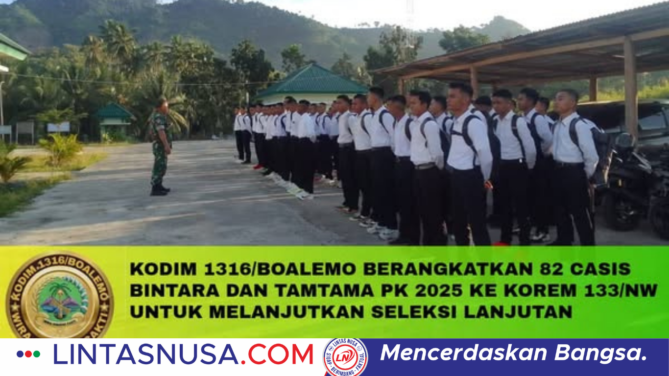 Boalemo – lintasnusa.com–Komando Distrik Militer (Kodim) 1316/Boalemo secara resmi memberangkatkan Calon Siswa (Casis) Bintara dan Tamtama Prajurit Karier (PK) TNI AD Tahun Anggaran 2025 ke Markas Ajenrem 133/Naniwartabone, Jumat (10/5/2025). Pemberangkatan ini merupakan bagian dari proses untuk mengikuti tahapan seleksi lanjutan di tingkat Korem.