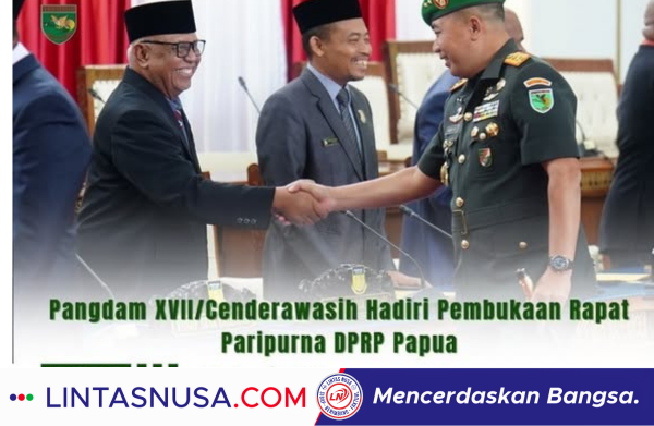 Papua – lintasnusa.com–Pangdam XVII/Cenderawasih Mayjen TNI Rudi Puruwito, S.E., M.M menghadiri Pembukaan Rapat Paripurna Dewan Perwakilan Rakyat Provinsi Papua bertempat di Kantor DPRP Provinsi Papua, Jayapura, Selasa (15/4/2025).