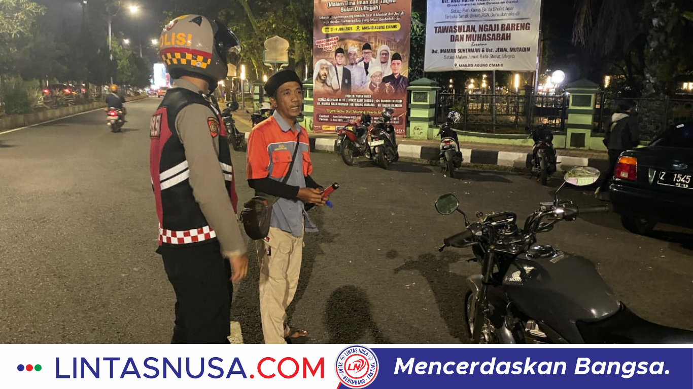 Ciamis – lintasnusa.com–Dalam rangka menjaga stabilitas keamanan dan ketertiban masyarakat (harkamtibmas), Satuan Samapta Polres Ciamis melaksanakan kegiatan Patroli Biru R2 pada Sabtu dini hari, 3 Mei 2025, sekitar pukul 03.00 WIB. Kegiatan ini difokuskan di area parkiran Masjid Agung Ciamis, salah satu titik rawan yang menjadi pusat aktivitas masyarakat jelang pelaksanaan shalat Subuh.