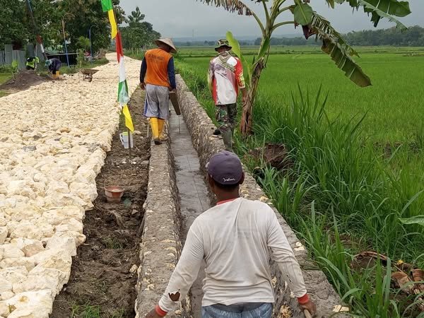 Blora, lintasnusa.com – Program TNI Manunggal Membangun Desa (TMMD) Sengkuyung Tahap I Kodim 0721/Blora yang sedang dilaksanakan di Desa Adirejo, Kecamatan Tunjungan, Kabupaten Blora, kini sudah memasuki tahap akhir dalam pembangunan saluran drainase di sepanjang jalan Makadam. Saluran drainase yang memiliki panjang 185 meter tersebut kini tengah dalam proses finishing, sebagaimana yang diungkapkan oleh Bati Tuud Koramil 04 Tunjungan, Peltu Suheriawan.