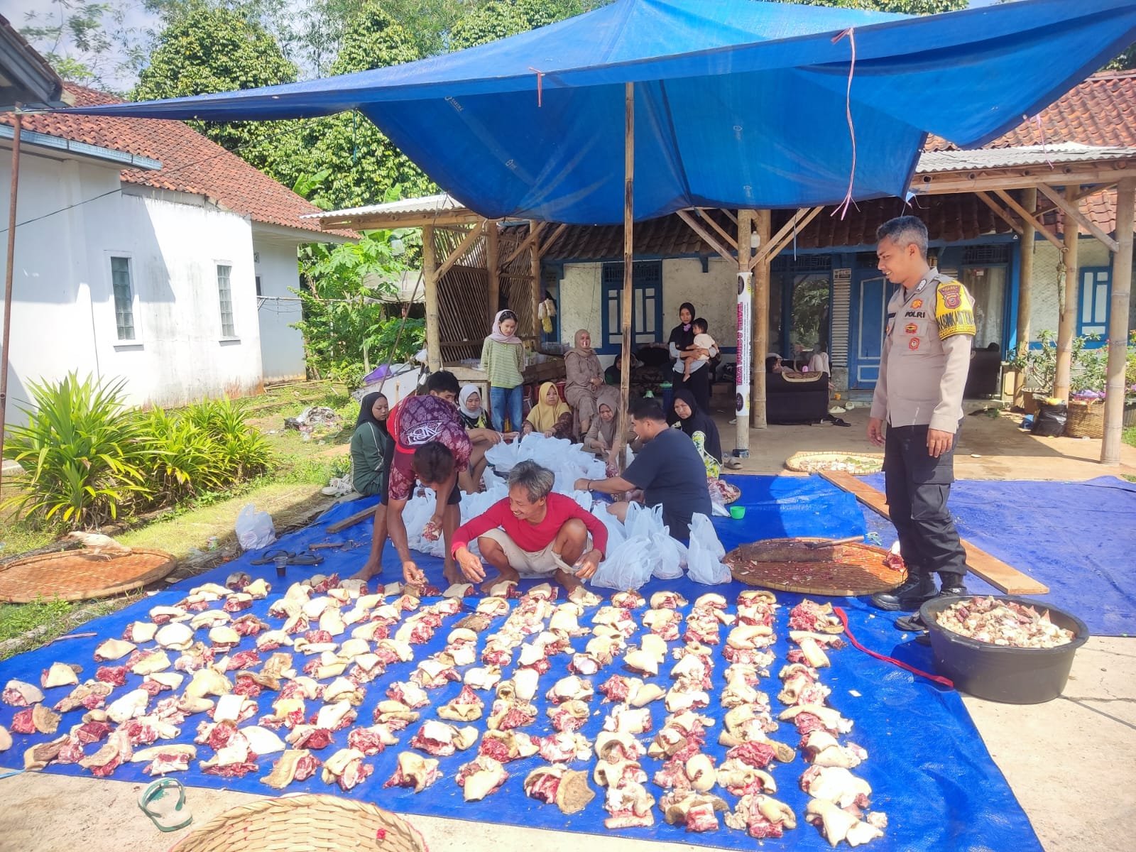 Kabupaten Ciamis, Lintasnusa.com – Dalam rangka menciptakan situasi yang aman dan kondusif selama pelaksanaan ibadah Hari Raya Idul Adha 1446 Hijriyah / 2025 Masehi, jajaran Polsek Ciamis Polres Ciamis melalui peran aktif Bhabinkamtibmas melaksanakan kegiatan monitoring penyembelihan hewan kurban di wilayah Desa Karangampel, Kecamatan Baregbeg, Kabupaten Ciamis.