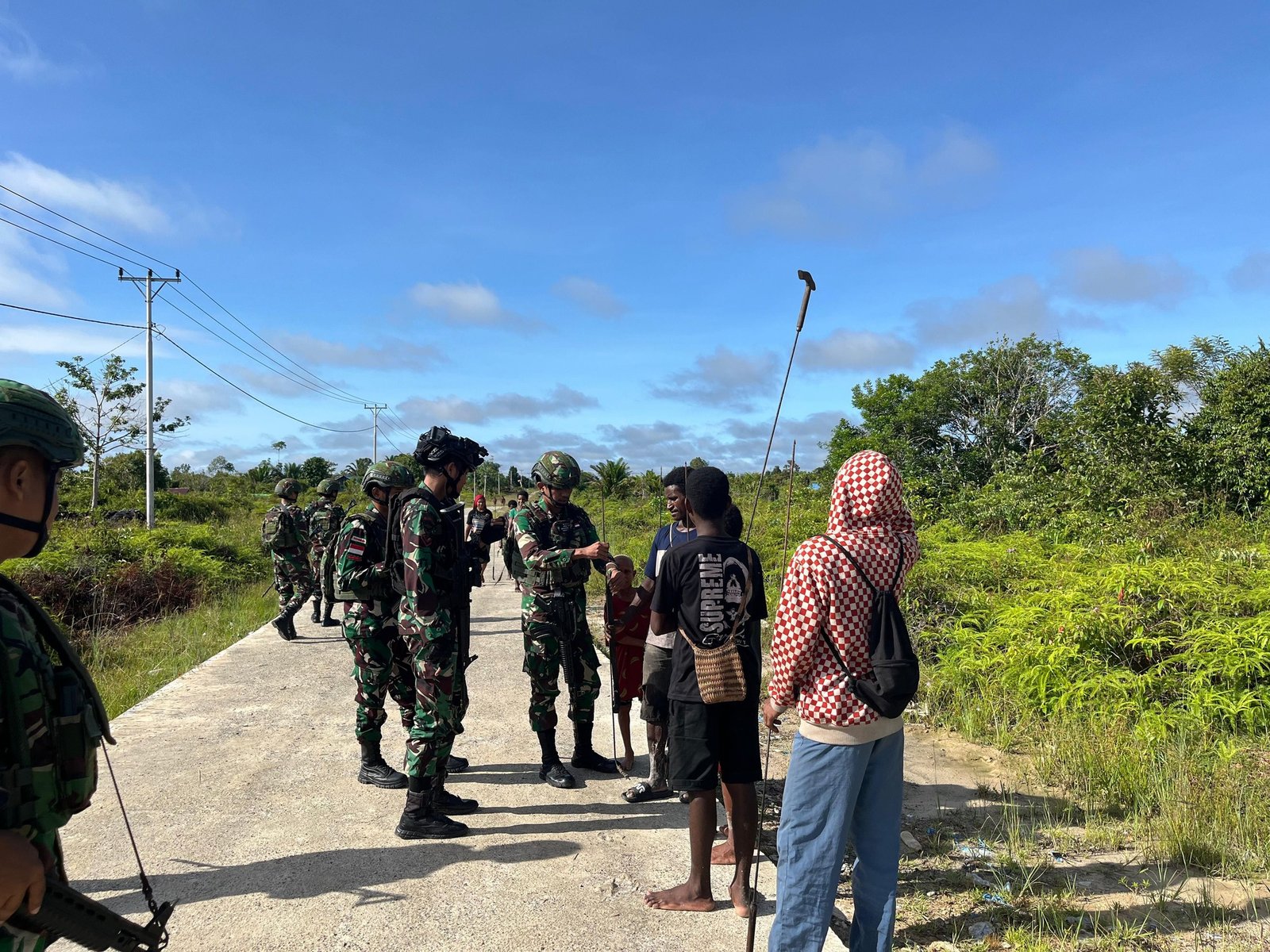 lintasnua.com–Personel Satgas Pamtas RI-PNG Yonif 141/AYJP (Rabu, 29 januari 2025) Personel Satgas pos SENGGO melaksanakan giat Patroli keamanan dalam rangka menjaga keamanan setempatDalam giat tersebut di pimpin oleh Dantim 2 Sersan dua Tio dan 8 Anggota Pos SENGGO ,dari giat tersebut sembari pengamanan wilayah distrik citak mitak setempat, juga untuk menggali informasi tentang daerah daerah sekitar pos SENGGO