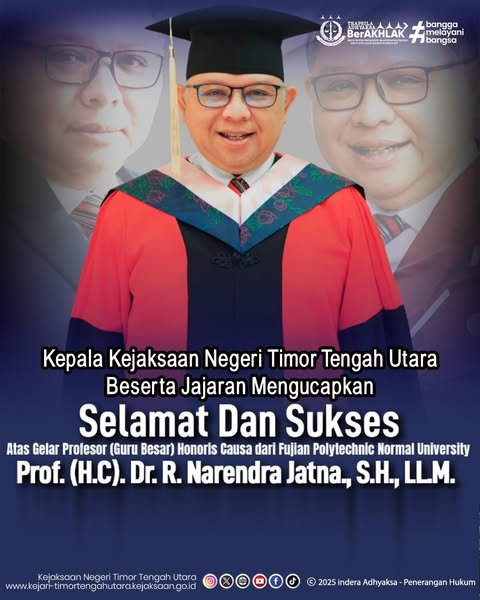 Sebagai bentuk apresiasi dan kebanggaan, Kepala Kejaksaan Negeri Timor Tengah Utara beserta jajaran juga turut menyampaikan ucapan “Selamat dan Sukses” atas pencapaian tersebut, sebagaimana tercantum dalam poster resmi yang telah beredar luas.