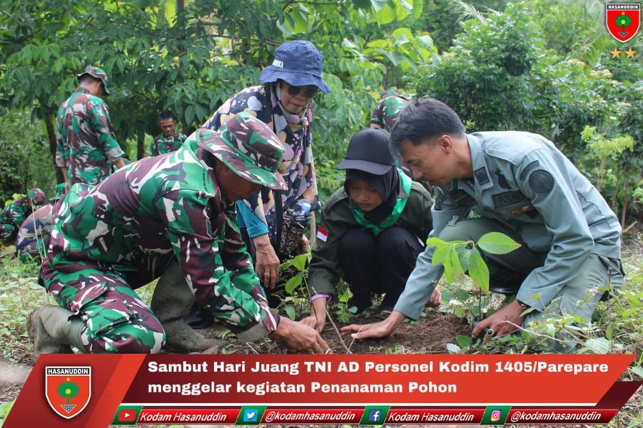 Kegiatan ini dipimpin langsung oleh Pasi Ter Kodim 1405/Parepare Kapten Inf Sudirman, dengan melibatkan berbagai pihak, mulai dari aparat pemerintah setempat,Pencinta lingkungan hidup,hingga Masyarakat setempat yang dengan antusias ikut serta dalam penanaman berbagai jenis pohon produktif dan peneduh.