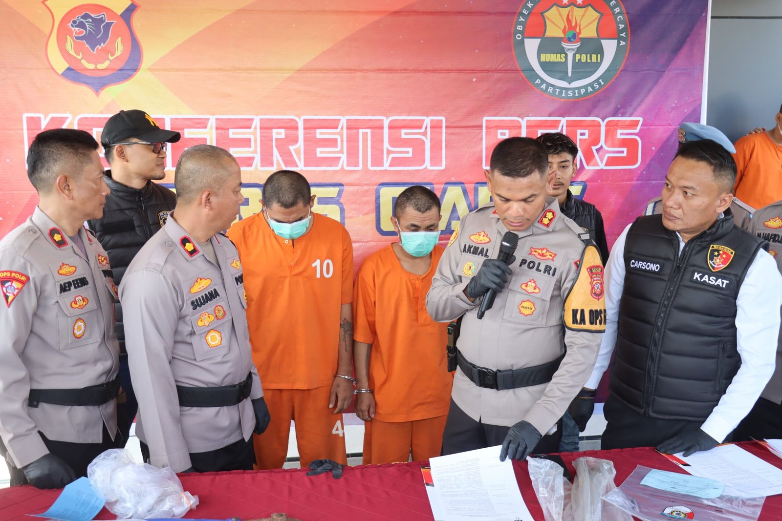 “Hari ini kami sampaikan, Satuan Reserse Kriminal Polres Ciamis Polda Jabar berhasil mengungkap tindak pidana pencurian dengan pemberatan kendaraan bermotor yang terjadi di Desa Bojonggedang Kecamatan Rancah pada tanggal 2 Maret 2025. Sebanyak dua pelaku beserta barang bukti telah diamankan di Makpolres Ciamis Polda Jabar,” ujar Kapolres Ciamis Polda Jabar AKBP Akmal, SH., S.I.K., M.H., didampingi Wakapolres Ciamis Kompol Sujana, S.Pd., Kabag Ops Polres Ciamis Kompol Aep Saepudin, SH., M.M., Kasat Reskrim Polres Ciamis AKP Carsono, SH., dan Kasi Humas Polres Ciamis Ipda Mohammad Hafid Dahlan, SH., dalam konferensi pers di depan Lobi Makopolres Ciamis, Jalan Jenderal Sudirman No.271, Sindangrasa, Ciamis, Kabupaten Ciamis, Jawa Barat, Kamis (20/3/2025).