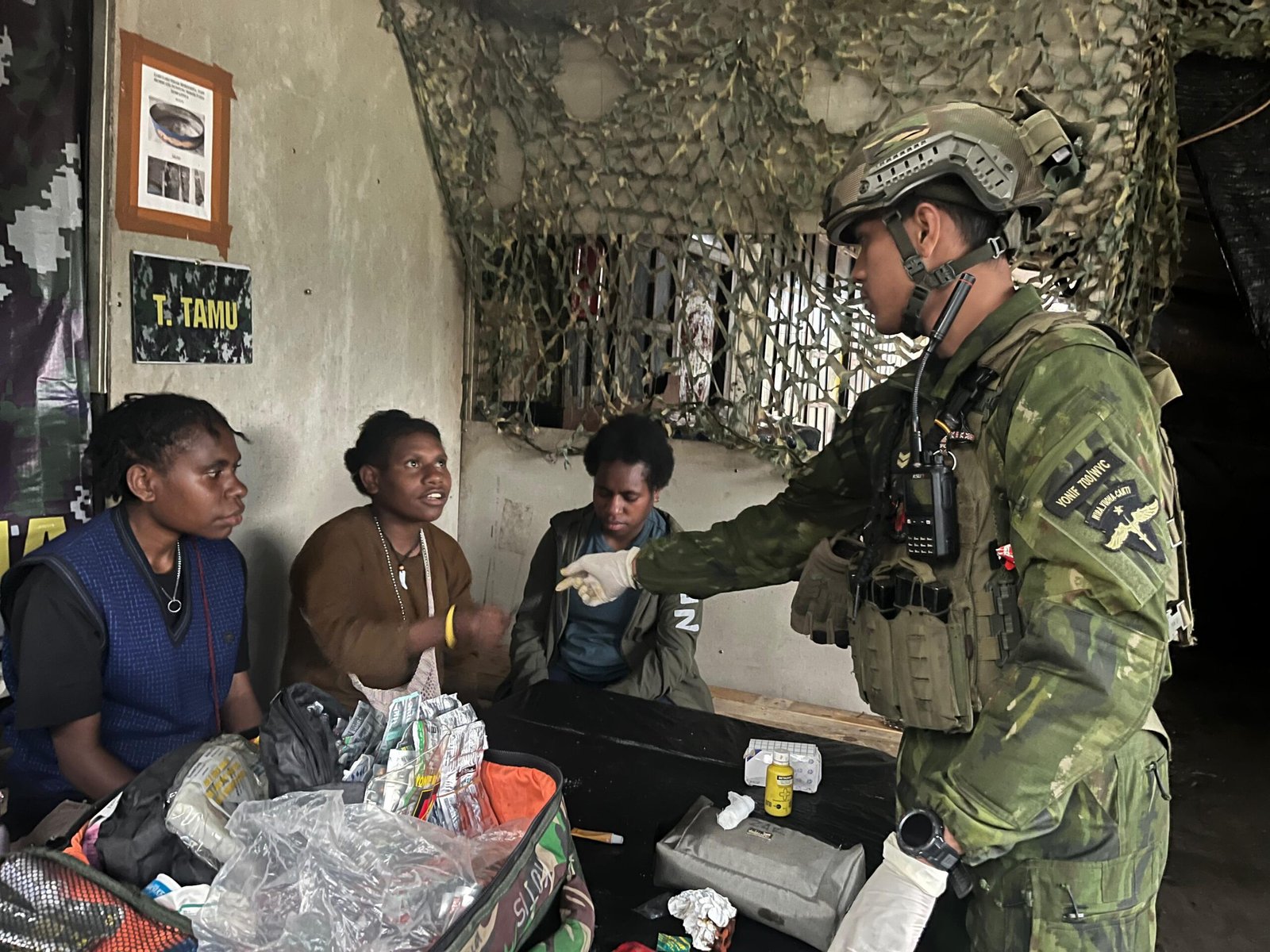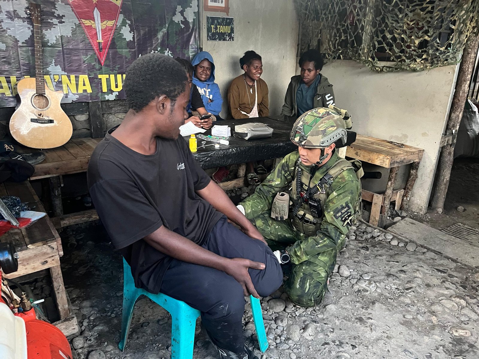 Satu per satu siswa menerima pemeriksaan dan penanganan langsung dari Bakes Pos Kosatgas, Sertu Fiqi. Otniel yang mengalami luka di kaki, Jerince dengan keluhan demam dan sakit kepala, Aprianti dengan masalah lambung, serta Agata yang batuk, semuanya mendapatkan perawatan sesuai keluhan.