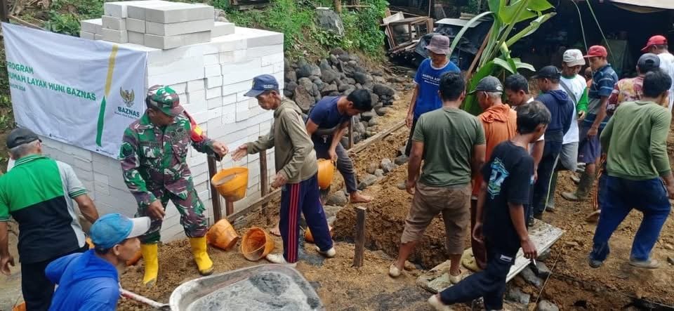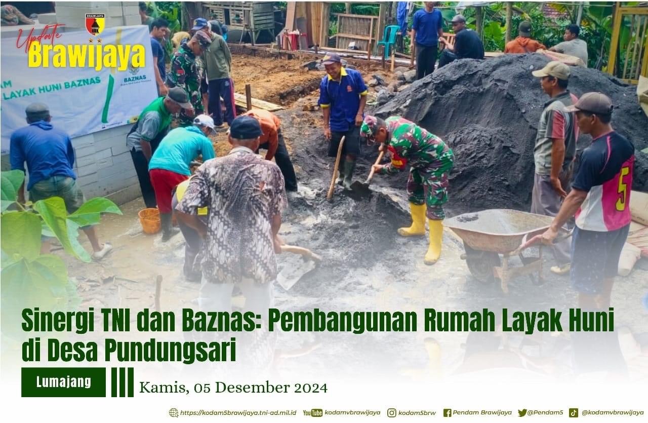 Lumajang – Babinsa Pundungsari, Serka Fery Dian Prasetiyono, bersama masyarakat melaksanakan karya bakti pembangunan rumah tidak layak huni milik Misdi di Dusun Sukorejo. Program ini merupakan inisiatif dari Badan Amil Zakat Nasional (Baznas) Kabupaten Lumajang untuk meningkatkan kesejahteraan sosial.
