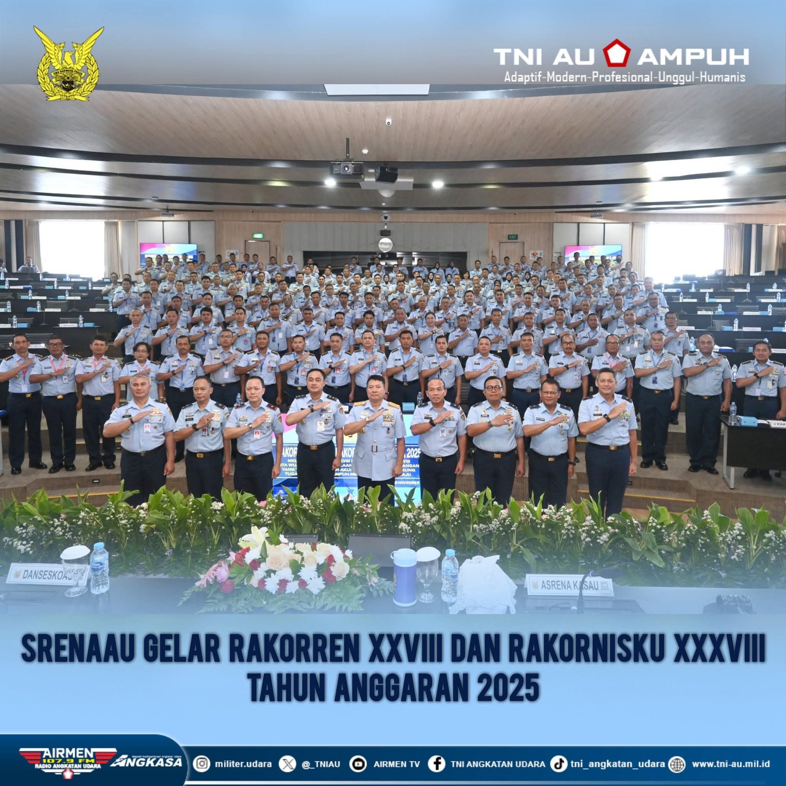Lintasnusa.com – Staf Perencanaan dan Anggaran TNI Angkatan Udara (Srenaau) menggelar Rapat Koordinasi Perencanaan (Rakorren) XXVIII dan Rapat Koordinasi Teknis Keuangan (Rakornisku) XXXVIII TNI AU Tahun Anggaran 2025 di Gedung Widya Mandala I, Seskoau, Lembang, Selasa (4/11/2025).