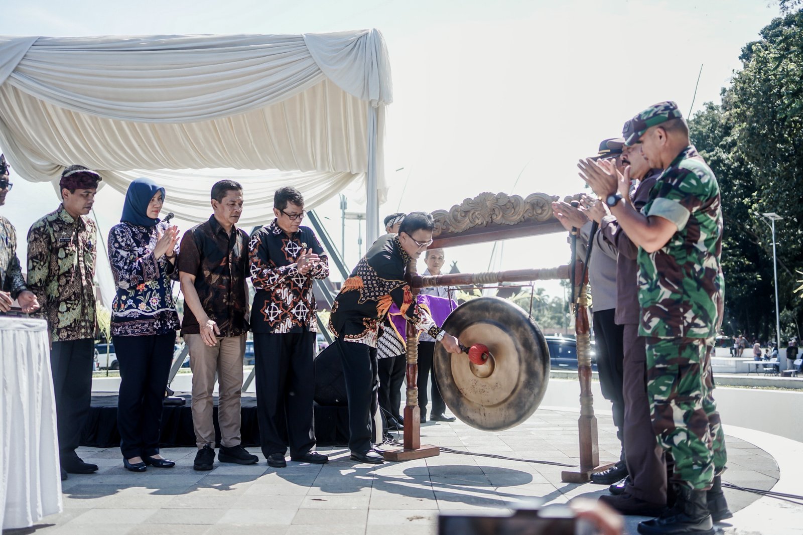 Peresmian ditandai dengan pemukulan gong, disaksikan oleh jajaran Forkopimda Ciamis dan tamu undangan lainnya.