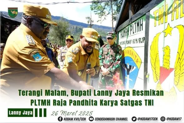 Papua – lintasnusa.com–Masyarakat Kampung Lowanom, Distrik Malagayneri, Kabupaten Lanny Jaya kini bisa menikmati listrik pada malam hari setelah bertahun-tahun hidup dalam kegelapan. Pembangkit Listrik Tenaga Mikro Hidro (PLTMH) Raja Pandhita, yang merupakan hasil karya Satgas Pamtas RI-PNG Kewilayahan Yonif 614/RJP, diresmikan langsung oleh Bupati Lanny Jaya, Aletinus Yibalom, S.Pd, pada Selasa (25/3/2025).