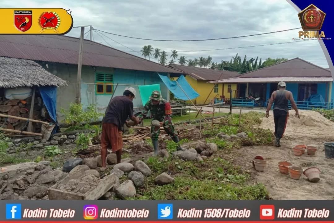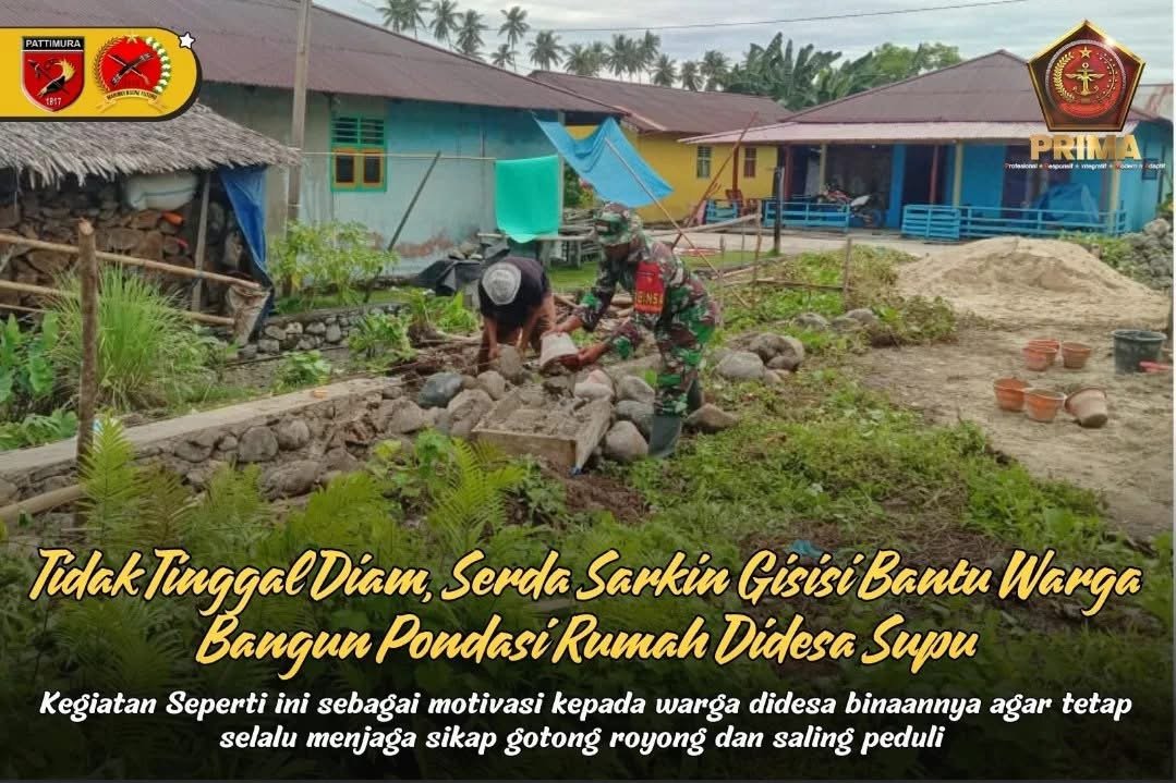 Halmahera Utara – Sebagai bentuk kepedulian terhadap masyarakat, Bintara Pembina Desa (Babinsa) Koramil 1508-02/Galela, Serda Sarkin Gisisi, membantu warga dalam pembangunan pondasi rumah di Desa Supu, Kecamatan Loloda Utara, Kabupaten Halmahera Utara.