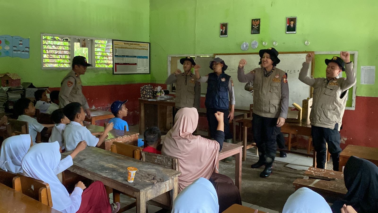 Tim Bag Psikologi Polda Jabar bersama Tim Trauma Healing SSDM Polri bertolak dari Polsek Tegal Buleud menuju Madrasah Ibtidaiyah Rambay.
