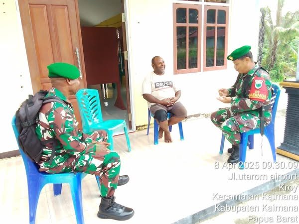 Kaimana, 8 April 2025 – lintasnusa.com–Dalam rangka mempererat hubungan kerja sama dan memperkuat pembinaan teritorial, Babinsa Koramil 1804-01/Kaimana, Kodim 1804/Kaimana, Serka Nofri bersama Sertu Ndiken melaksanakan komunikasi sosial (Komsos) dengan Tokoh Agama, Bapak Ferdinan Richard Taboka, di wilayah Kaimana, Papua Barat.