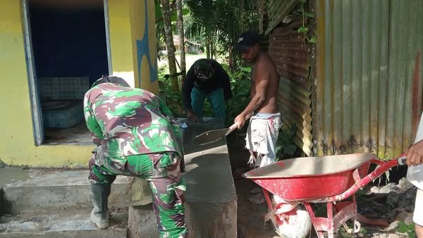 Sorong Selasa (13/05/2025)- lintasnusa.com–Perehaban 2 Unit MCK sasaran fisik program TMMD KE 124 Kodim 1802/Sorong memasuki tahap pengecoran rabat keliling. Danramil 1802-03/Salawati Kapten Inf Semba Selaku Komandan SSK TMMD Ke 124 progres rehab 2 Unit MCK telah sampai 39%. Lokasi TMMD di Kampung Yeflio distrik mayumuk kabupaten Sorong provinsi Papua Barat Daya. Selasa (13/05/2025).