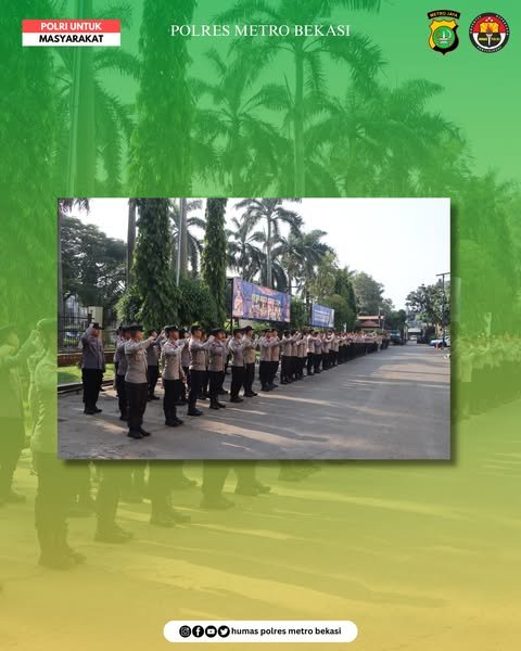Apel yang dimulai pukul 08.00 WIB ini diikuti oleh seluruh pejabat utama, perwira, hingga anggota jajaran Polres Metro Bekasi. Kegiatan tersebut menjadi bagian dari upaya memperkuat soliditas internal dan memastikan kesiapan personel menjelang peringatan Hari Buruh Internasional atau Mayday 2025.
