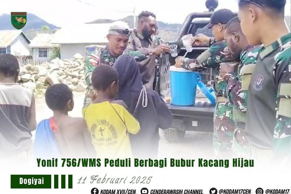 Papua – lintasnusa.com – Wujud nyata kepedulian terhadap masyarakat di wilayah perbatasan terus ditunjukkan oleh Satgas Pamtas Kewilayahan Yonif 756/Wimane Sili (WMS). Melalui Pos Moenamani Baru, Satgas TNI menggelar kegiatan berbagi bubur kacang hijau kepada warga di Kampung Mauwa, Distrik Kamuu, Kabupaten Dogiyai, Provinsi Papua Tengah, Selasa (11/2/2025).