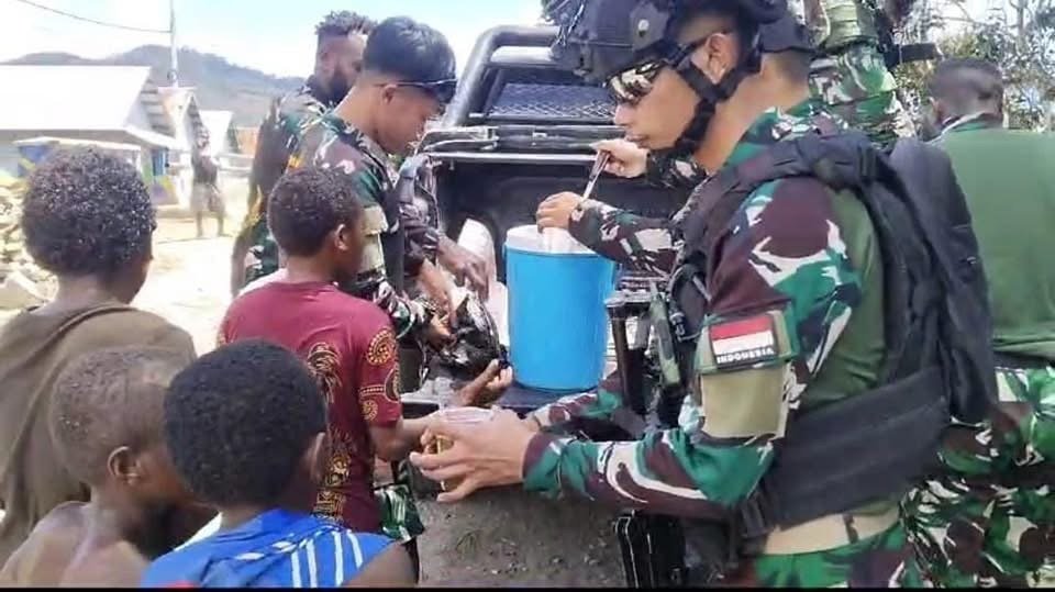 “Terima kasih kepada abang-abang TNI di Pos Mauwa yang selalu berbagi. Buburnya enak sekali, saya senang bisa makan bersama teman-teman di sini,” katanya.